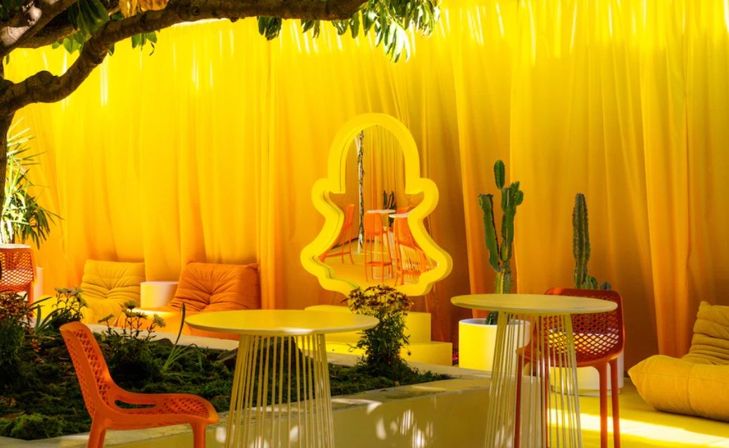 Snapchat также организовал VIP-зал в виде фотозоны, которая запомнилась гостям двумя интересными особенностями. Во-первых, здесь были качели, где каждый желающий мог сделать фото. Во-вторых, внимание привлекал яркий декор в солнечных тонах с необычными арками и настоящими деревьями. Пустыня это или джунгли — у каждого свои ассоциации, но внимание точно удалось привлечь.