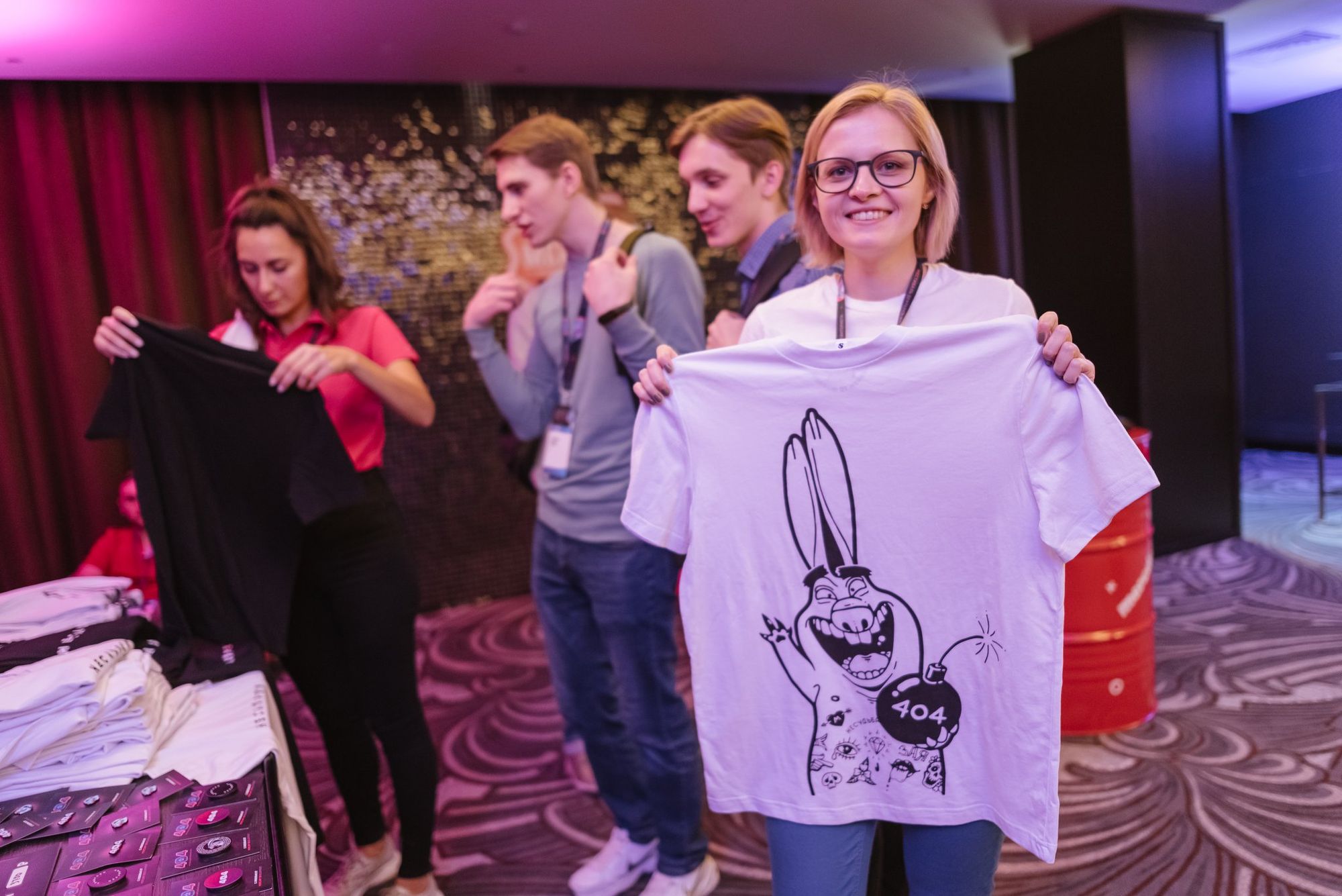 Поставщик оборудования и программного обеспечения OCS регулярно дарит на конференциях своего оранжевого осьминога, а Trello фирменную хаски. Организаторы Фестиваля 404 дарят мерч с недобрым, но милым Зайцем Несудьбы, остывающим к мемам начала 2000-х.