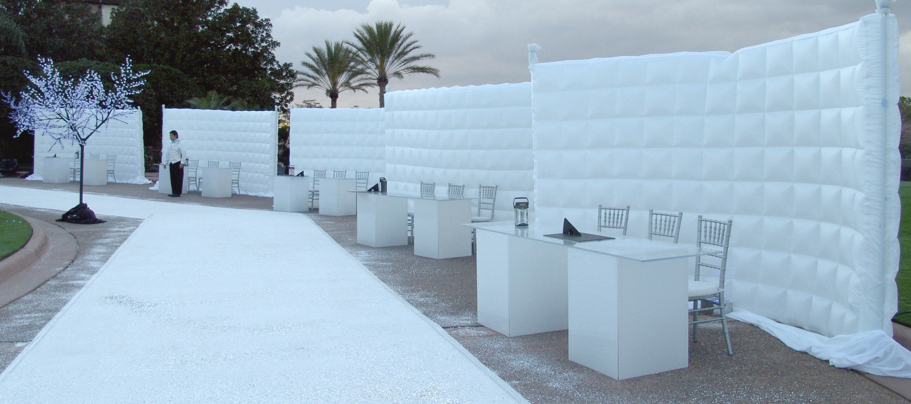 Используйте креативный подход к установке надувных стен. Используйте различные варианты подсветки или сделайте из них дополнительные экраны при помощи проекторов.