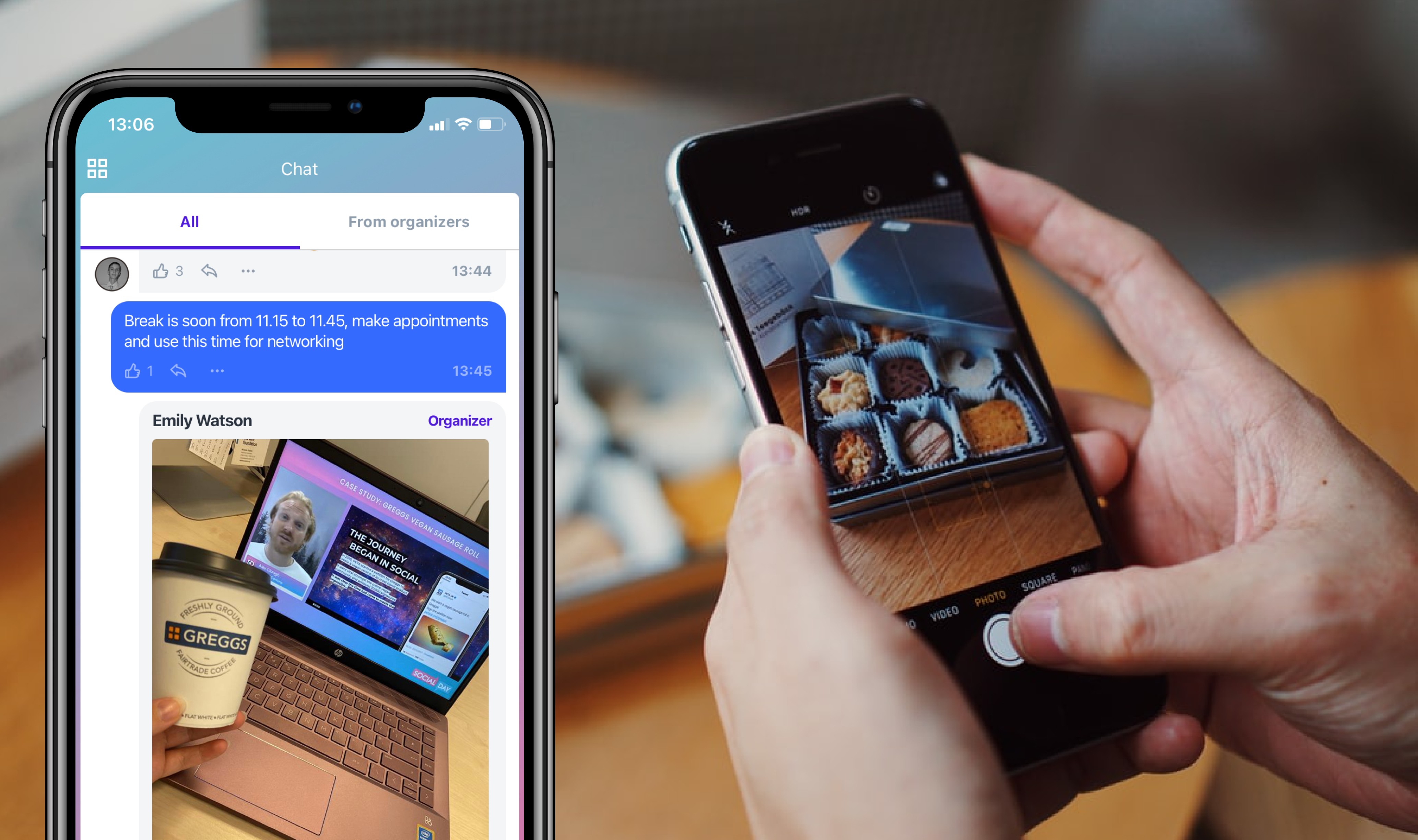 Участники из офлайн с удовольствием общаются друг с другом во время кофе-брейков. Мотивируйте их зайти в приложение, чтобы использовать все возможности нетворкинга!