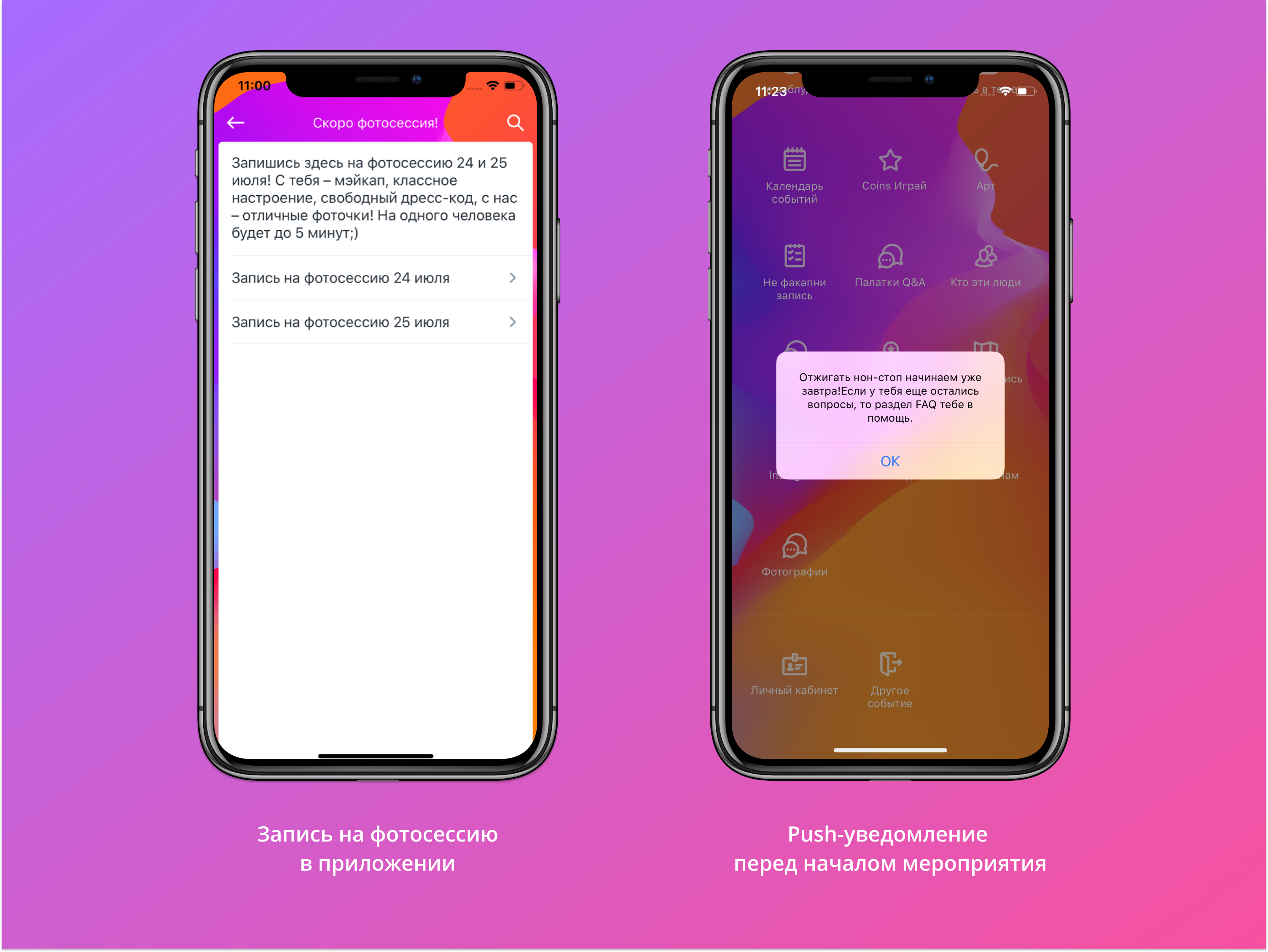 А еще организаторы активно использовали push-уведомления, чтобы напомнить участникам важные моменты программы.