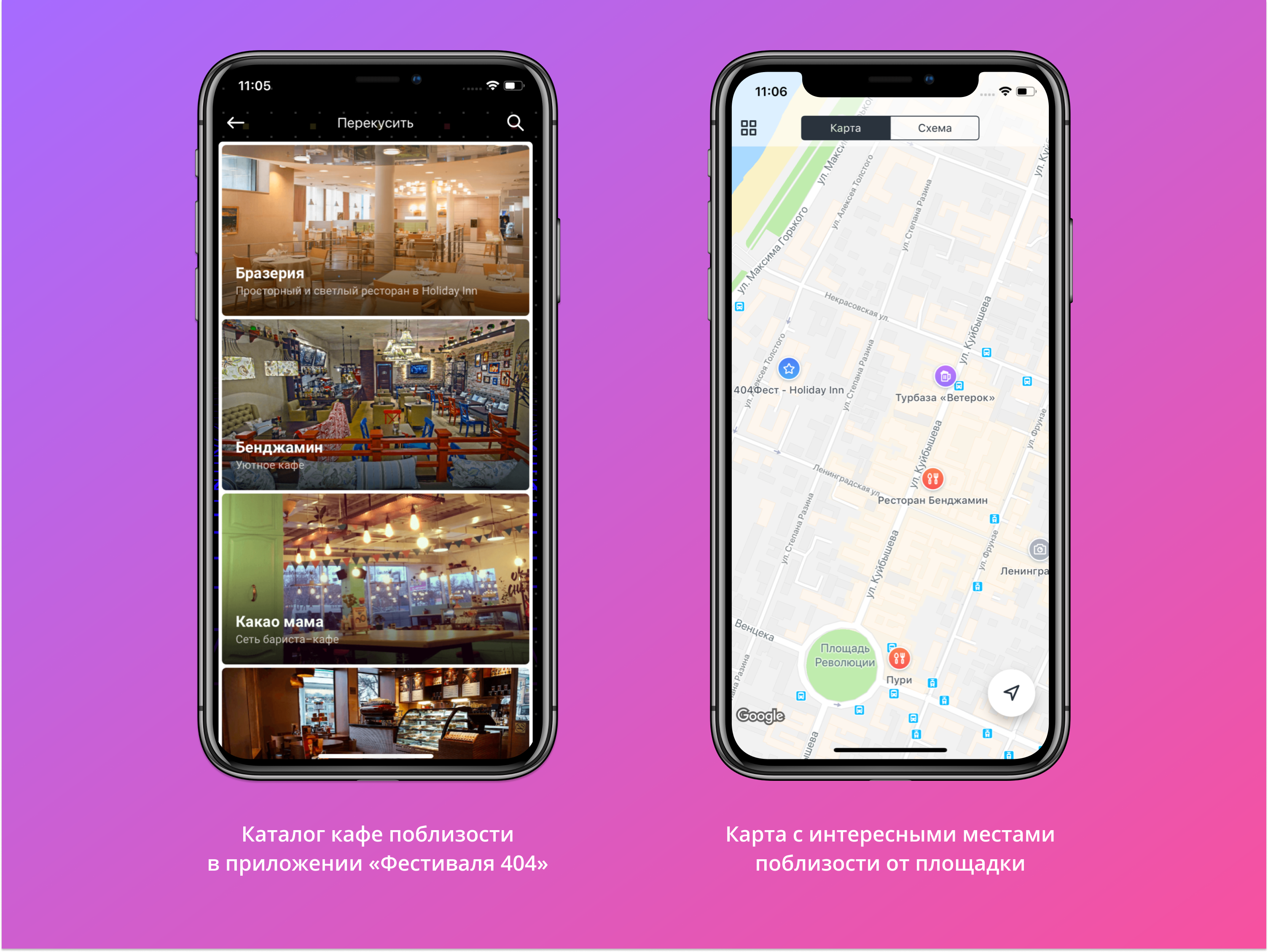 Отличный пример такого раздела с полезностями — в приложении Фестиваля 404 в Самаре. Организаторы рассказали обо всех достопримечательностях и вариантах досуга поблизости от места проведения мероприятия, за что иногородние участники были им очень благодарны.