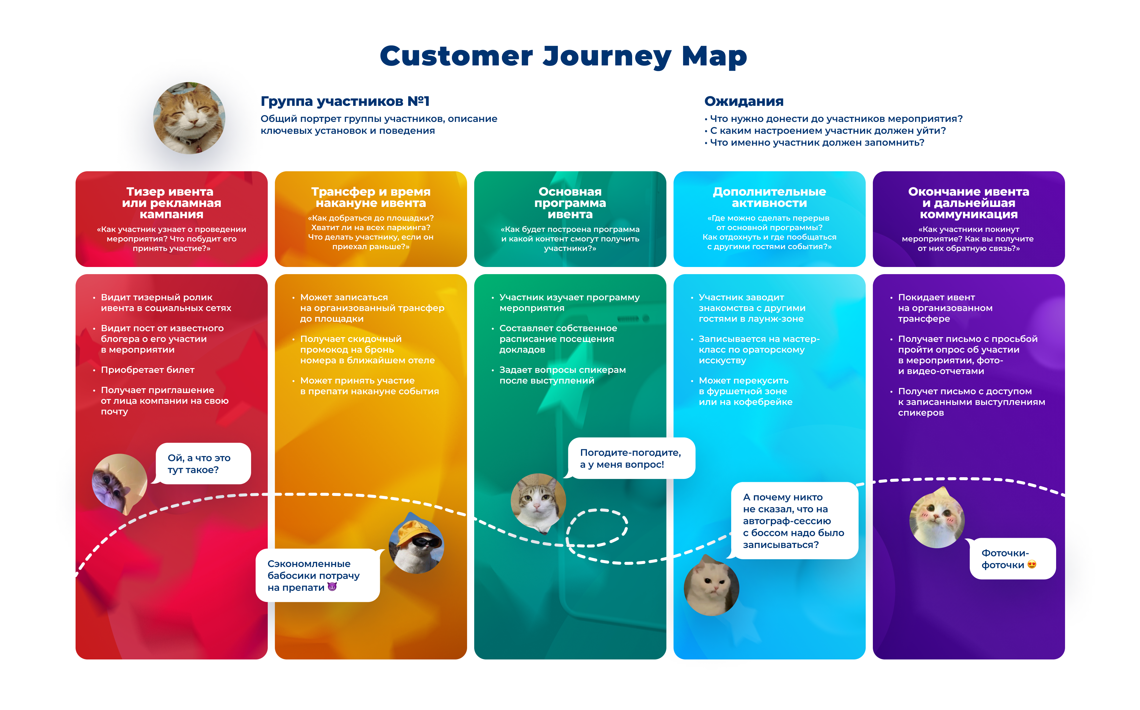 Создать гостям уникальный опыт участия и дать им контент, который идеально впишется в их цели и ожидания — все эти задачи организатору может помочь решить Customer Journey Map.