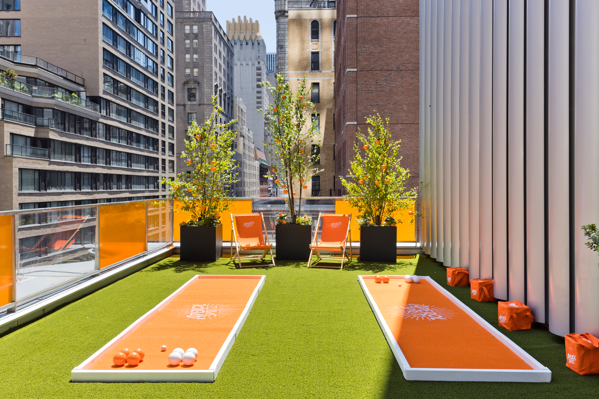 Можно поддержать дизайн-код ивента и более серьёзным подходом. Например, на фестивале, который связан с гонками, выдать организаторам стилизованные гоночные костюмы. А футбольному или баскетбольному ивенту вполне подойдут полосатые судейские футболки.