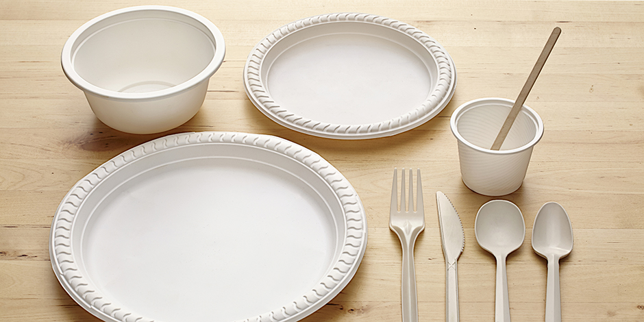 Например, для массовых мероприятий на несколько сотен участников, где использование многоразовой посуды нереально, в качестве альтернативы пластику можно использовать, стаканы и тарелки из вторичного сырья или из биоразлагаемых материалов (кукурузного крахмала, бамбука, сахарного тростника).