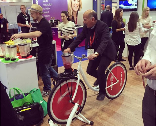 Еще одним источником «зелёной» энергии могут стать сами участники. Продвигайте здоровый образ жизни, установив велотренажёры, которые будут вырабатывать электроэнергию для обеспечения комфорта в зоне отдыха. Например, это могут быть коктейль-тренажёры, при помощи которых каждый может приготовить себе коктейль и потратить немного калорий. Или просто подсоедините тренажёры к разноцветным гирляндам, чтобы вся атмосфера менялась, когда кто-то крутит педали.