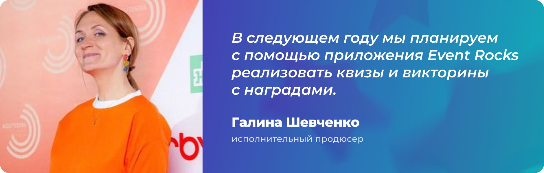 В следующем году мы планируем с помощью приложения Event Rocks реализовать квизы и викторины с наградами.