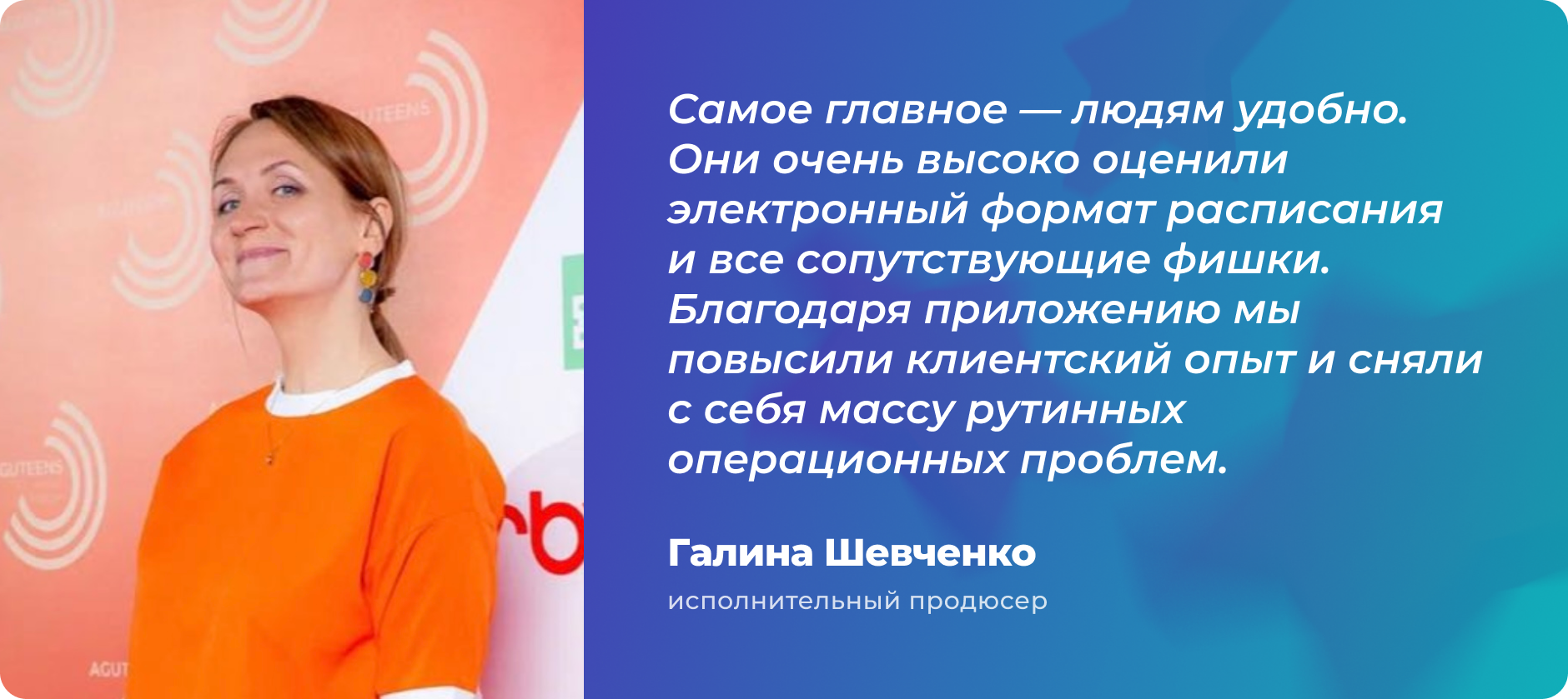 Самое главное — людям удобно. Они очень высоко оценили электронный формат расписания и все сопутствующие фишки. Благодаря приложению мы повысили клиентский опыт и сняли с себя массу рутинных операционных проблем.
