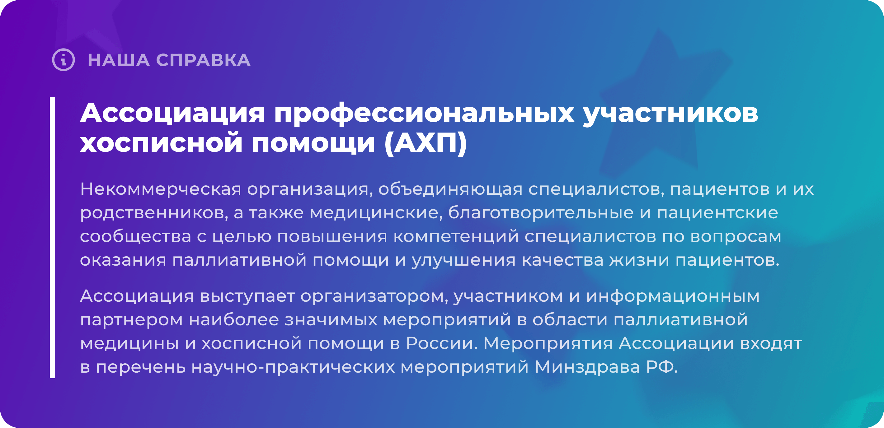 Наша миссия — объединять людей, которые работают в сфере паллиативной помощи, аккумулировать и распространять полезную информацию по этой теме.
