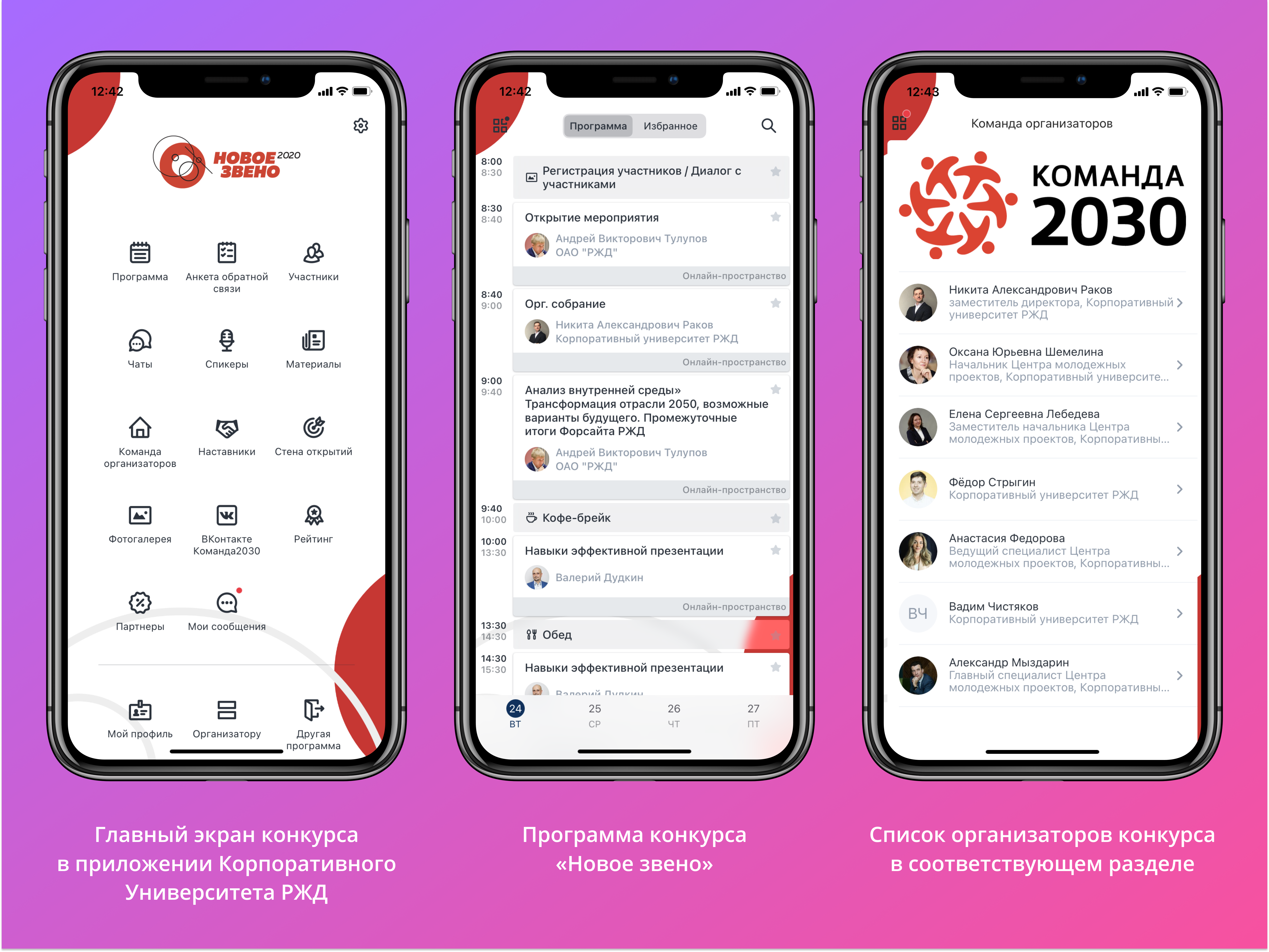 И кроме того, хотя вся железнодорожная сеть у нас компьютеризированная, среди участников программ Корпоративного Университета много тех, кто работает не в офисе — дорожных и линейных работников и т.д. Для них зачастую мобильный формат наиболее удобен. Вся информация о мероприятии, последние новости и обновления программы, общение с другими участниками, учебные материалы — всё всегда под рукой.
