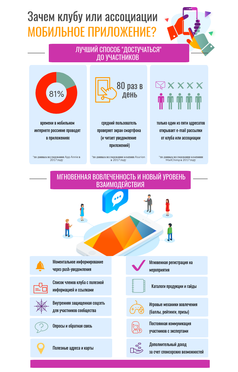 Или... можно сделать мобильное приложение для клуба и получить высокую конверсию, мгновенный отклик, отсутствие конкуренции за внимание с другими ресурсами, структурированную информацию и полный контроль над коммуникацией.