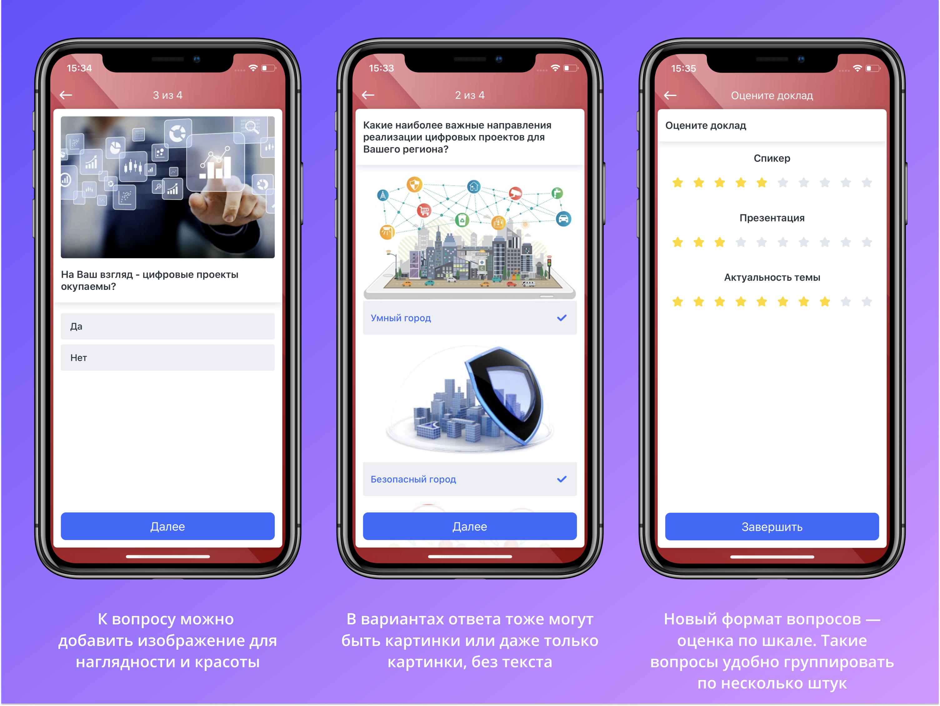 Разработчики Ивентишес проделали большую работу, чтобы сделать опросы быстрее и удобнее. Если опустить технические подробности, то теперь опросы в приложениях Ивентишес намного быстрее загружаются и не притормаживают при слабом интернет-соединении.