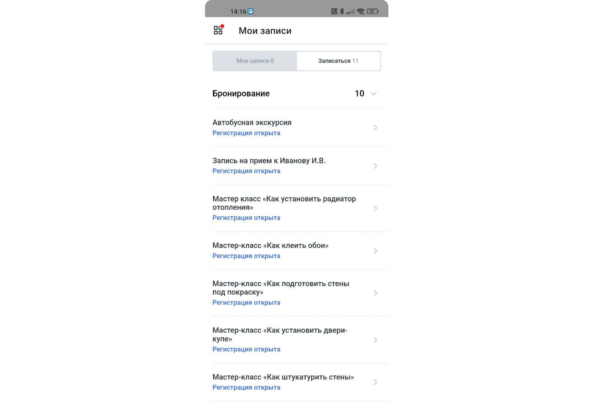 Мы улучшили интерфейс раздела «Мои записи» для пользователей. Здесь все бронирования группируются по типам, что очень удобно, если предполагается несколько однотипных событий.