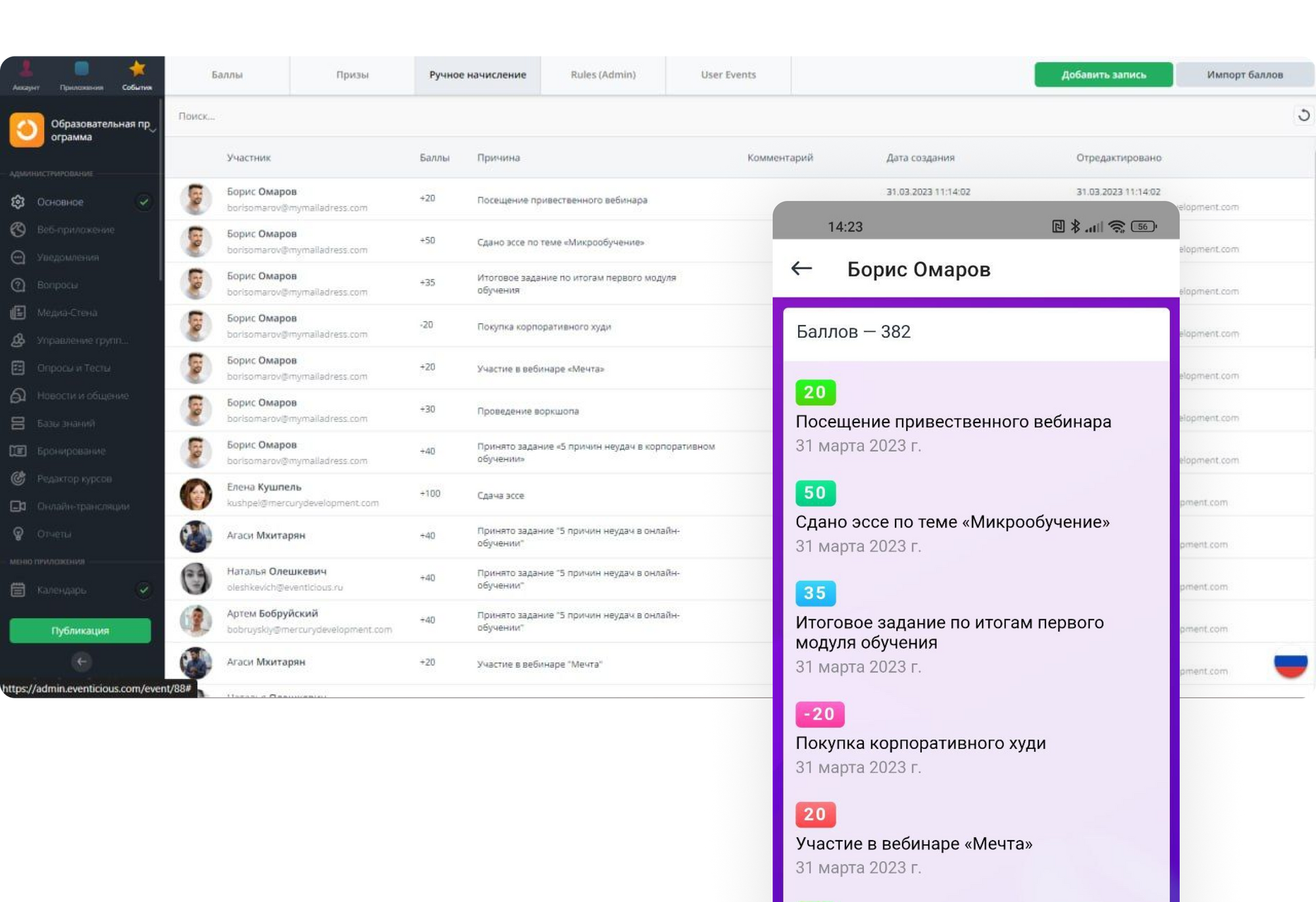 Теперь стало проще проводить различные игровые активности на мероприятии, начислять баллы за выполненные задания, а также отслеживать историю начислений.