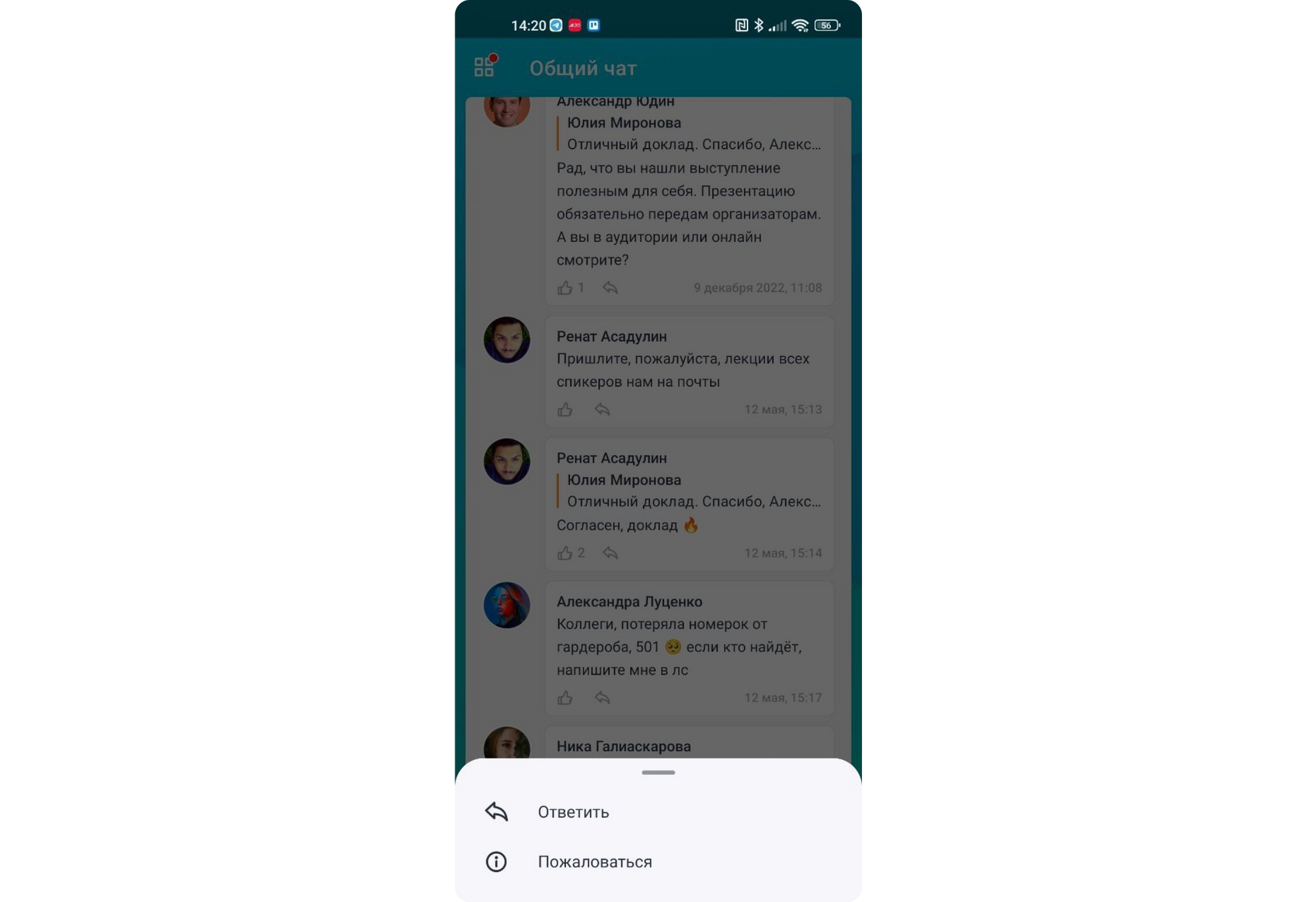 Теперь любой участник может оставить жалобу на комментарий другого пользователя. Эта функция доступна в новостных лентах, фотогалерее и вопросах к докладам. В момент нажатия на кнопку жалоба отправится на почту технической поддержки, а пользователь увидит сообщение, что жалоба отправлена.