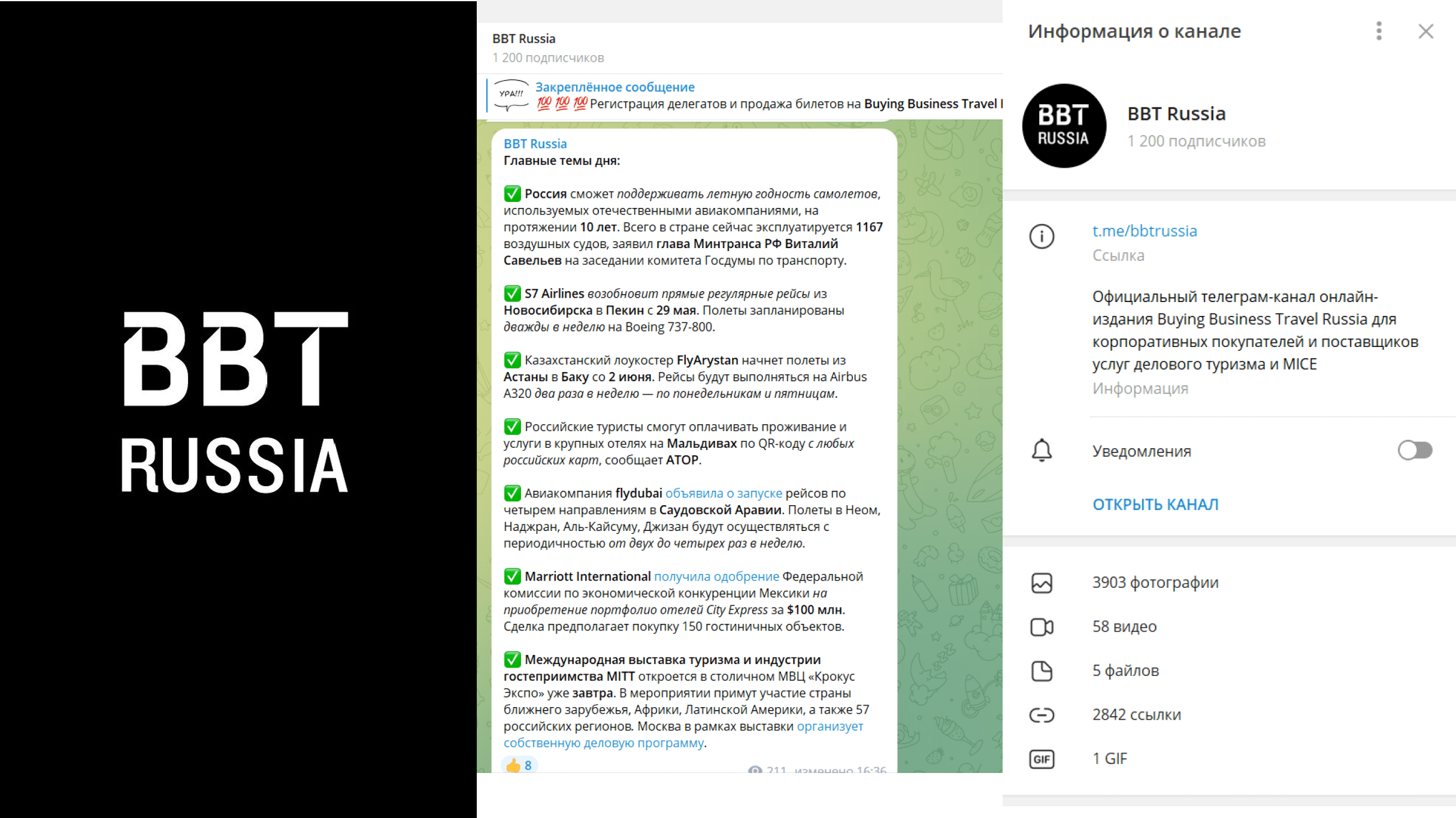 Официальный телеграм-канал онлайн-издания Buying Business Travel Russia для корпоративных покупателей и поставщиков услуг делового туризма и MICE.