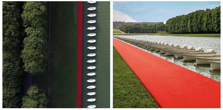 Строятся отдельные сцены, подиумы, частные пляжи. Такой ивент отличается строго индивидуальным подходом к каждому гостю, сложной логистикой, стилем и безупречным качеством. Люди, не входящие в число приглашённых групп, обычно узнают о таких мероприятиях из СМИ, а бренды используют эстетику оформления площадок как самостоятельный PR-повод. Например, на показе Jacquemus Fall 2023 приглашенные зрители расположились прямо в лодках посреди садов Версальского дворца короля Людовика XIV.