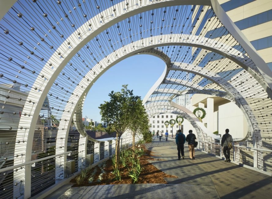 На самом базовом уровне, 180-метровый Радужный Мост на площадке LBCEC в Калифорнии – просто короткий путь, построенный для того, чтобы сократить на несколько минут время, необходимое, чтобы добраться с одной стороны кампуса конференц-центра до другой.