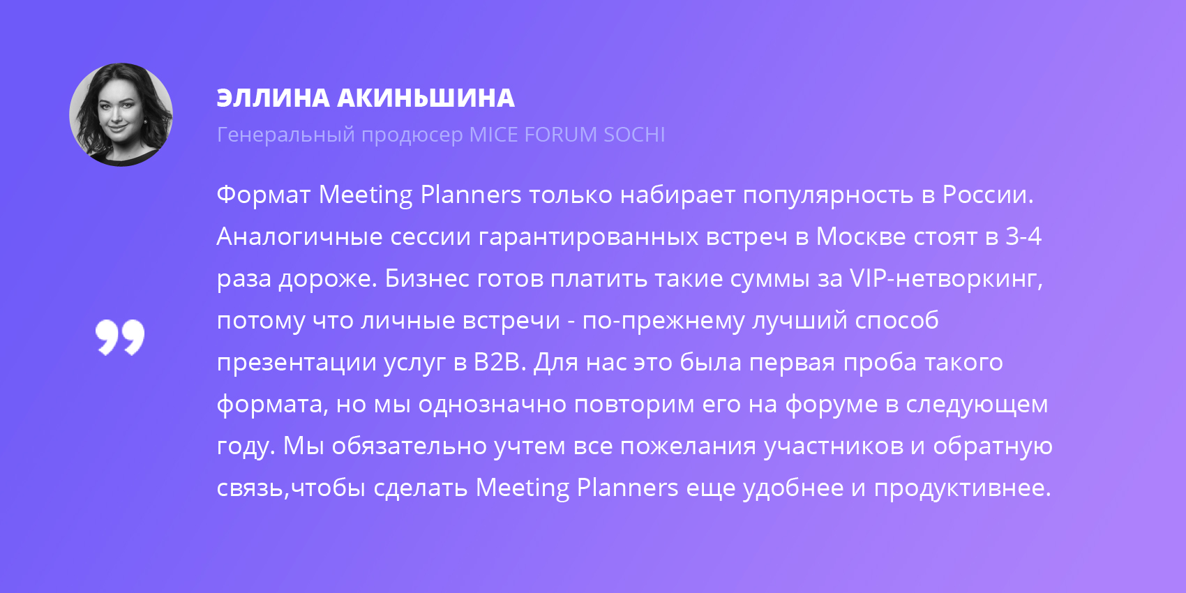 В этом году организаторы закрытого мероприятия для профессионалов MICE-индустрии MICE FORUM SOCHI решили подойти к нетворкингу технологично. Они опробовали новый формат — Meeting Planners — пятнадцатиминутные встречи в формате one-to-one и записали успешный кейс в свою копилку.